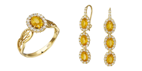 Серьги: Сапфир (Желтый) (6) 3,38 карат