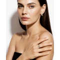 Бриллианты, аккуратно встроенные в архитектуру гарнитура, создают тонкие световые акценты, усиливая игру оттенков и объединяя элементы в цельный образ. Лаконичные линии оправы сохраняют ощущение лёгкости, позволяя камням звучать свободно и выразительно.