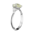 Каплевидная форма камня подчёркивает направленность образа — словно визуальная метафора выбора и движения вперёд. Высокое качество огранки обеспечивает равномерную световую отдачу, благодаря чему бриллиант сохраняет внутреннее сияние при любом освещении. Два бриллианта по бокам усиливают центральный акцент, формируя чёткий баланс и поддерживая композиционную ось кольца.