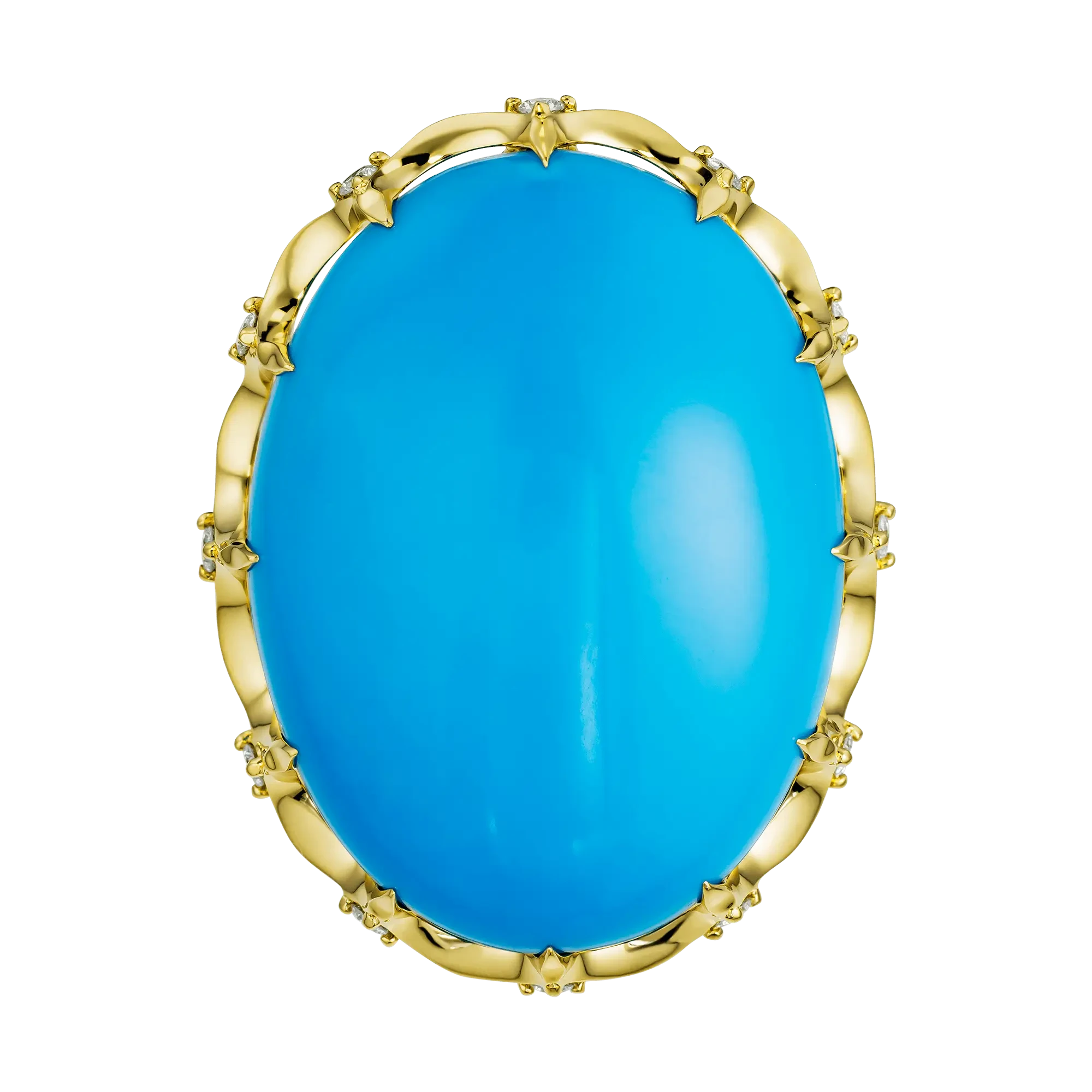 В центре композиции — крупная природная бирюза из Аризоны, камень с редкой глубиной цвета и живым природным рисунком. Её небесно-голубой оттенок воспринимается как пространство без границ. Бирюза здесь не просто декоративный элемент, а символ дороги — внешней и внутренней, наполненной смыслом и открытием.