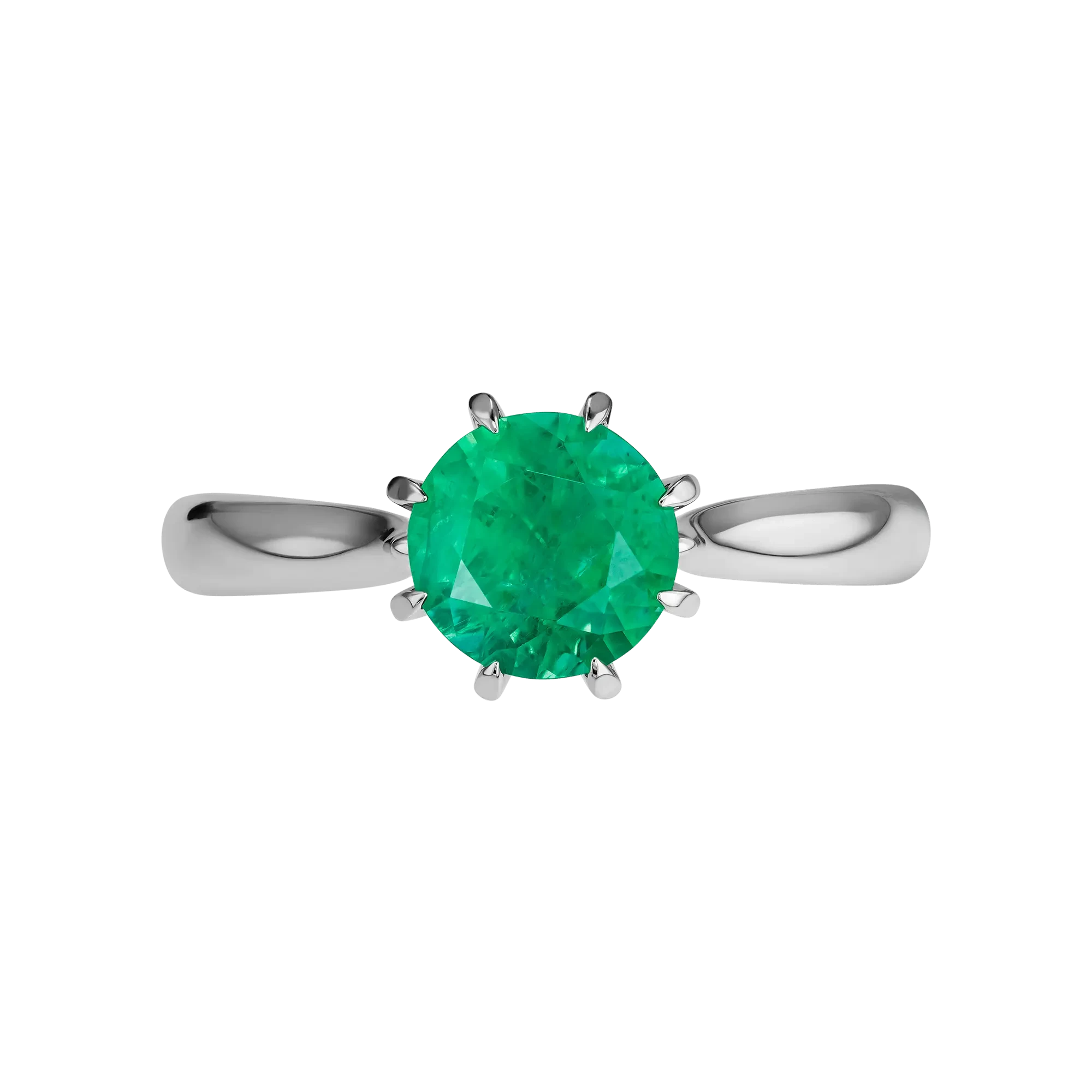 В центре композиции — уральский изумруд насыщенного зелёного оттенка, обладающий живой природной структурой и глубиной цвета. Камни этого месторождения ценятся за свою природную энергию и уникальность, а экземпляры с выразительным тоном и хорошей прозрачностью относятся к особенно значимым. Внутренние особенности кристалла придают цвету движение, делая его более объёмным и многослойным.