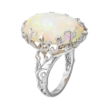 Разбрызгивая вокруг себя радужные переливы, которые, то сменяют друг друга, то вспыхивают все разом, создавая реалистичную иллюзию звездного неба, поддерживаемую, к тому же, сиянием многочисленных прозрачных бриллиантов, головокружительный опал огранки «кабошон» весом 12,21 карата пленяет мистическим очарованием.