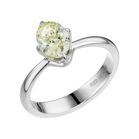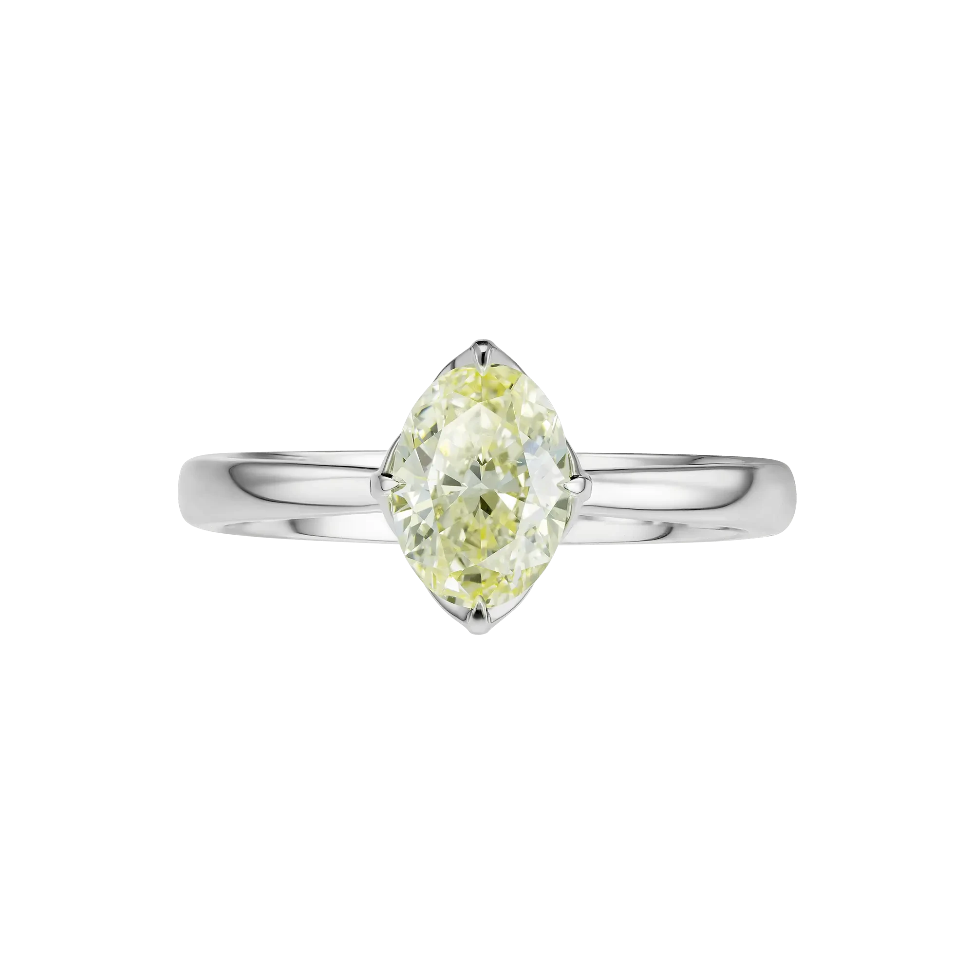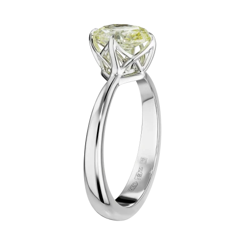 Кольцо «Совершенство эстетики» воплощает идею ювелирного минимализма, доведённого до уровня высокой экспертизы, где каждая линия служит раскрытию главного — качества и света драгоценного камня. В центре композиции расположен крупный бриллиант весом 1,01 карата нежно-лимонного оттенка, редкого и утончённого по своей визуальной природе. Его цвет воспринимается интеллектуально и сдержанно, раскрываясь через чистоту и глубину светового потока.
