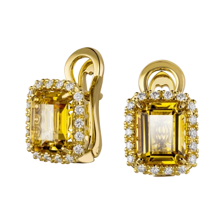 Серьги из желтого золота с натуральным цитрином и бриллиантами