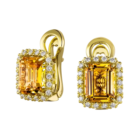 Обрамляя центральный дуэт общим весом 4,44 карата множеством сверкающих бриллиантов, ювелиры искусно подчеркнули их цветовую насыщенность, ассоциирующуюся со здоровьем, оптимизмом и жизненными силами. Чистейшие цитрины не просто радуют медовыми переливами, разливающимися до самых глубин, но и создают приятное ощущение расслабленности, свойственное женщине, которой сопутствует успех как в бизнесе, так и в личной жизни.