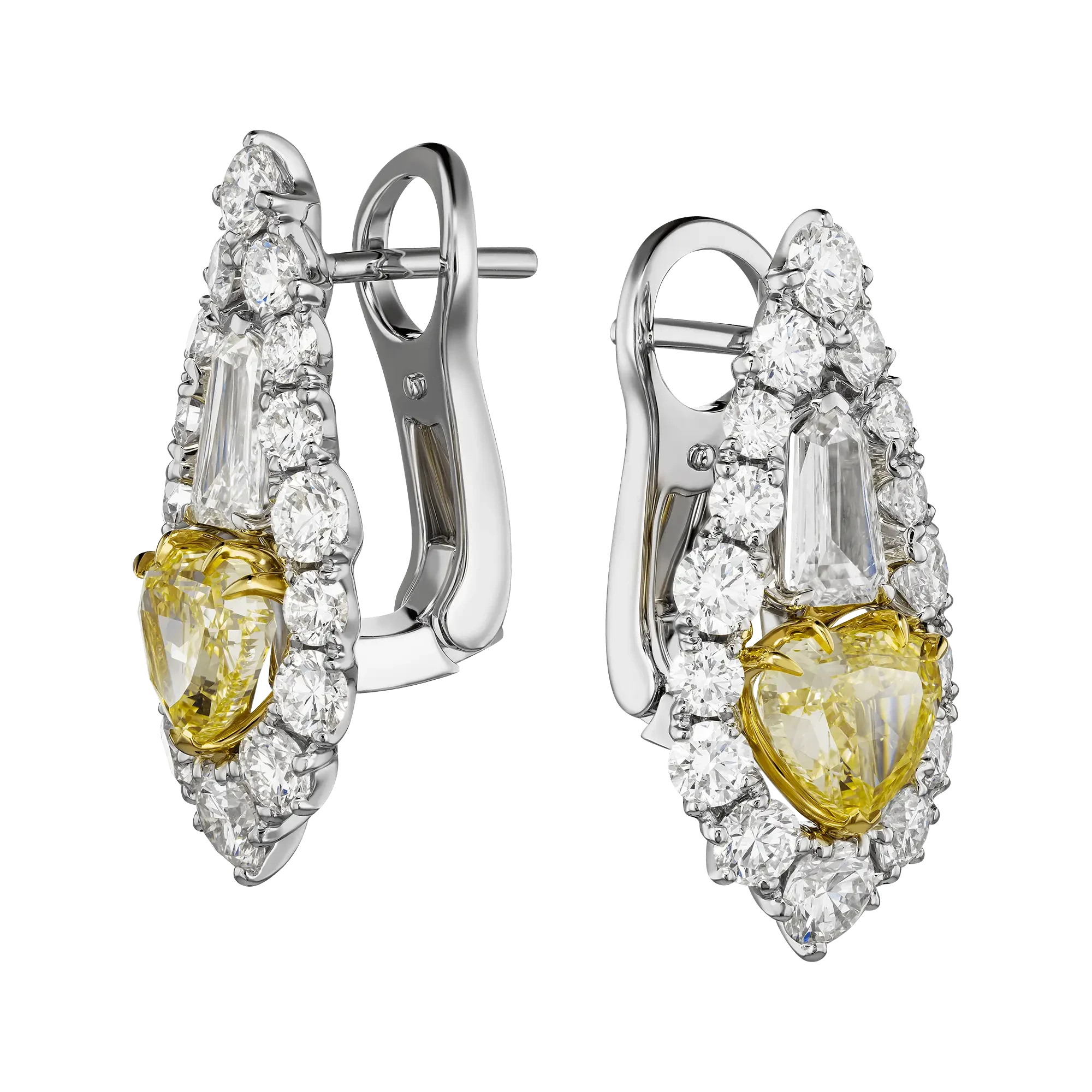 Серьги с жёлтыми бриллиантами – это образ вечности, заключённый в сиянии. Общий вес драгоценных камней в 2,06 карат превращает их в символ ценности, которую невозможно измерить лишь в каратах. Жёлтый бриллиант во все времена считался редчайшим даром природы, знаком силы света и величия, способного озарять не только пространство, но и саму душу.
