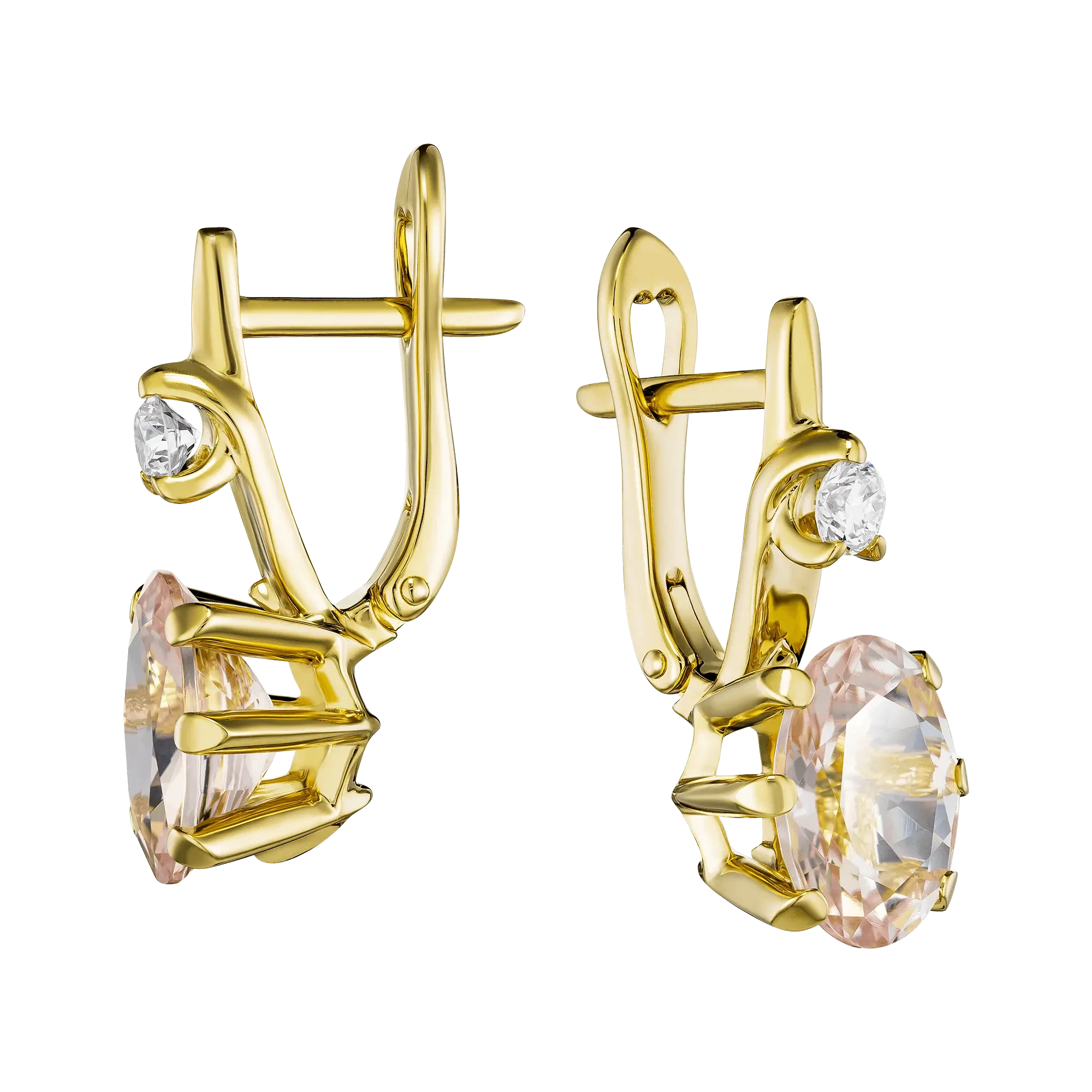 Плавные линии оправы из жёлтого золота обрамляют камни с особой деликатностью, усиливая их теплоту и мягкость. Бриллианты добавляют лучистые акценты, подчёркивая изящество формы и придавая серьгам завершённый, благородный ритм. «Источая нежность» — украшение для женщины, которая ценит тонкость чувств и выбирает красоту как состояние души.