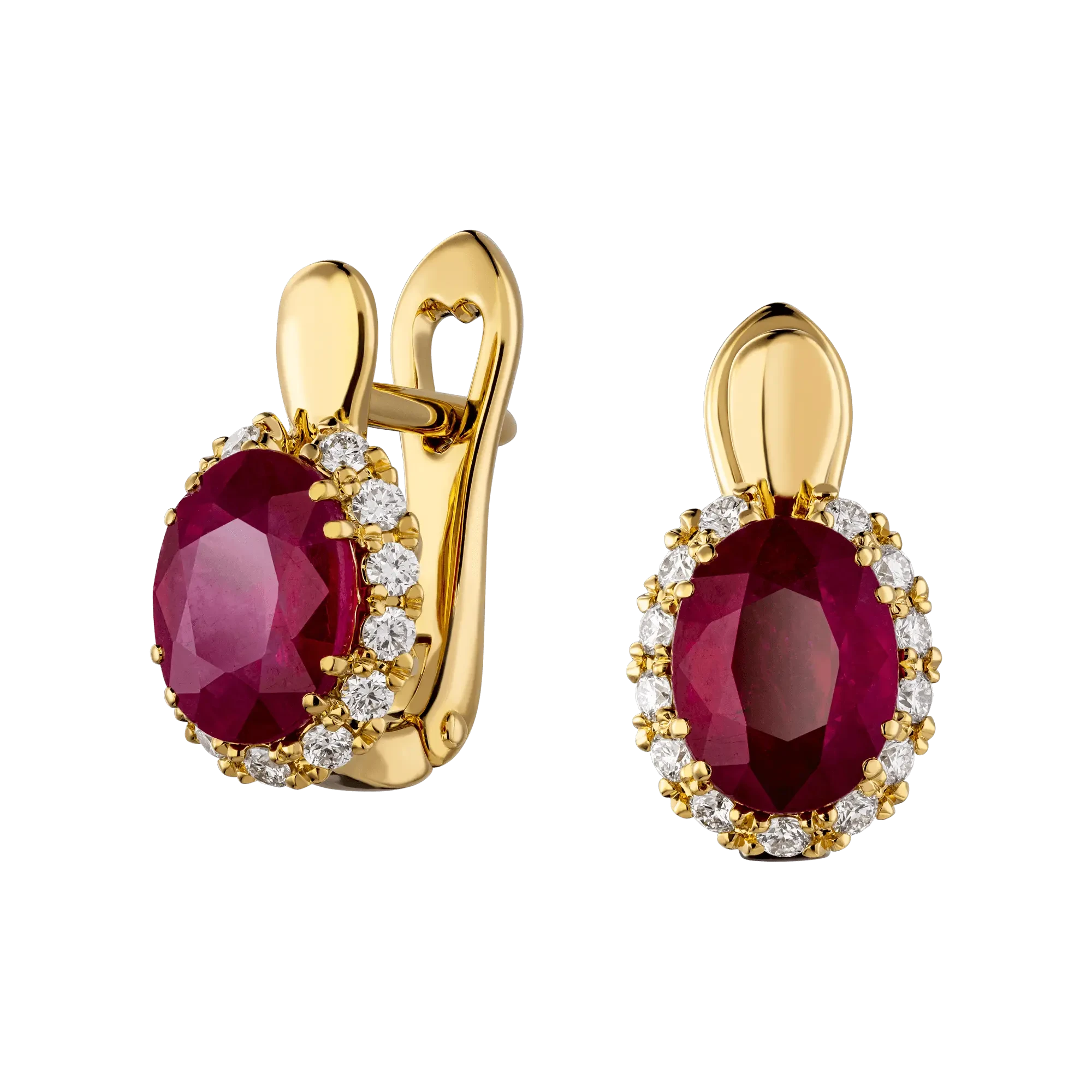 Красочное могущество двух восхитительных рубинов мастера Maxim Demidov запечатлели в элегантной чувственной гармонии изящной золотой оправы и многочисленных сверкающих бриллиантов. Прозрачные минералы окружают роскошные рубины сочного оттенка, подчеркивая атласное сияние животворящих мозабикских кристаллов, которые, по мнению эзотериков, продлевают жизнь и настраивают на оглушительный успех, без которого трудно представить образ современной сильной женщины-королевы.