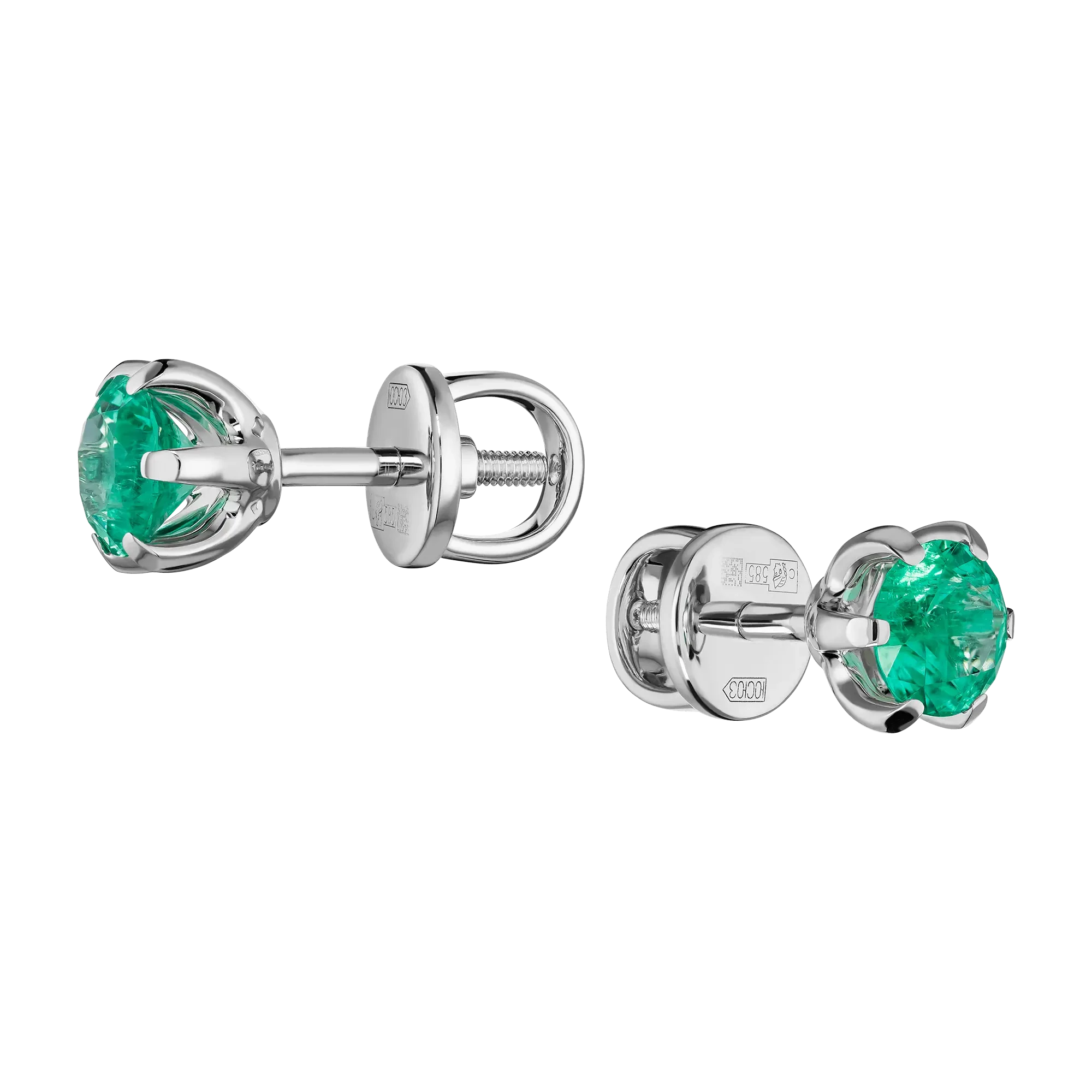 Белое золото оправы подчёркивает кристальную чистоту изумрудов, создавая тонкий контраст между прохладой металла и теплом природного света, рождающегося в камнях. Серьги идеально балансируют между повседневной сдержанностью и торжественной выразительностью.